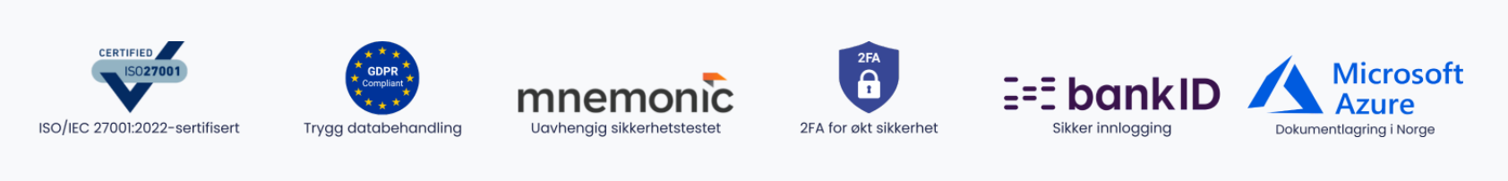 - Tilgangsstyring: Rollebasert tilgangsstyring sikrer at brukere kun ser det de skal ha tilgang til. Full loggføring av alle handlinger i portalen gir sporbarhet.